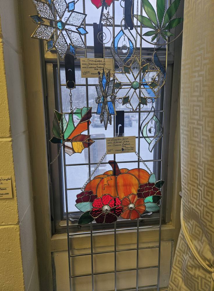 Currently, her stained glass art is exclusively displayed here at the gallery in Pinawa. However, she does highly welcome custom commissions. “I enjoy collaborating with clients to create items that hold a special, personal meaning. My goal is to craft one-of-a-kind, durable keepsakes that can be cherished for decades. If you have a specific vision in mind, please feel free to reach out to me through my Facebook page, Glass Sass, where you can also view my full portfolio of completed work.”