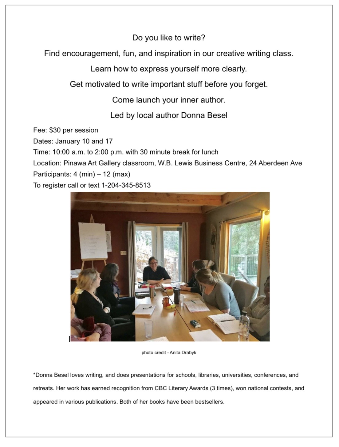 at Pinawa Art Gallery Thursdays early evening. It’s fun! Info@pinawaartgallery.com