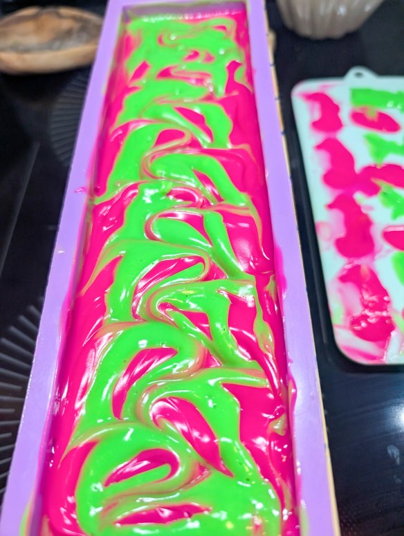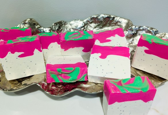 I am fairly new to Pinawa and new to soap making, both of which I am in love with! Being surrounded by the beauty of the area inspires me to be creative and to try new things. What started out as mild curiosity turned into a full on addiction to soap making! What I love about it is the challenge of getting the chemistry right in order to produce a bar of soap that not only cleans but leaves your skin feeling hydrated and soft without the use of synthetic chemicals. I enjoy researching how additives such as turmeric, honey, aloe gel and certain essential oils can benefit the skin, and the best way to add them to a recipe as well as the different qualities that certain butters and oils add to the soap. I would have to say, though, the reason why I keep making it is because it is a huge creative outlet for me! The design ideas are endless when working with colors and fragrances. The most satisfying part of the process is the “cut”: cutting a loaf of soap into slices to see how the colors combined and deciding what to name it. It definitely doesn’t always turn out the way I expect it to but I’m never discouraged enough not to take it back to my “lab” and try again. Thank you for buying my soap and for enabling my addiction. Your skin will also thank you.